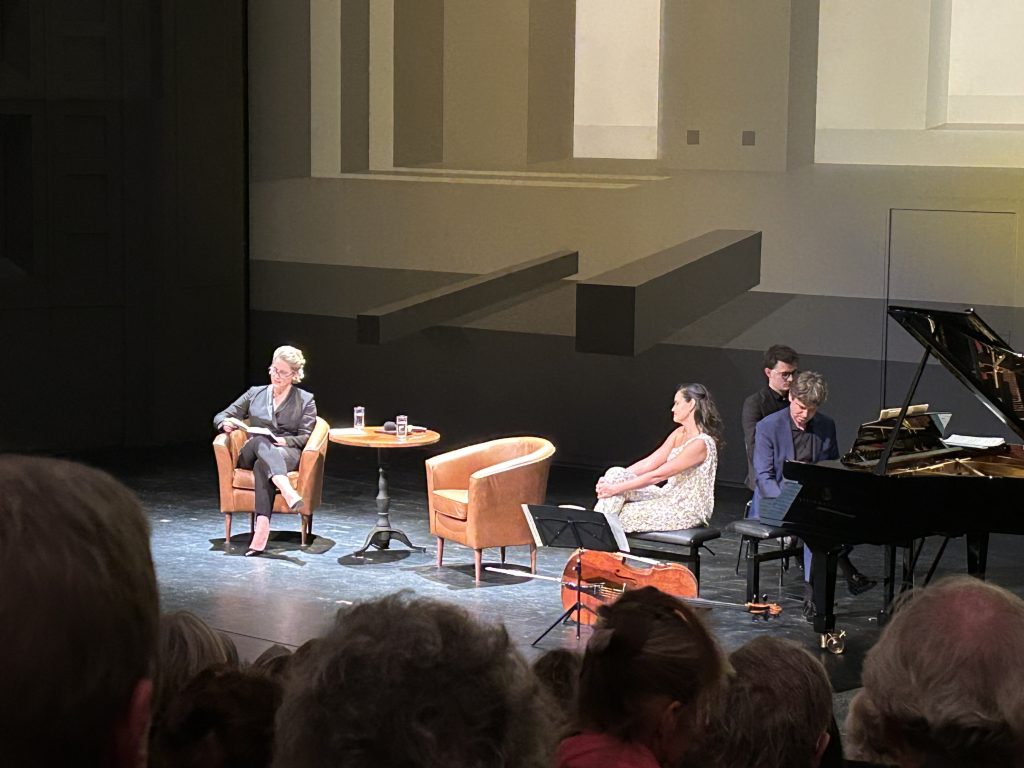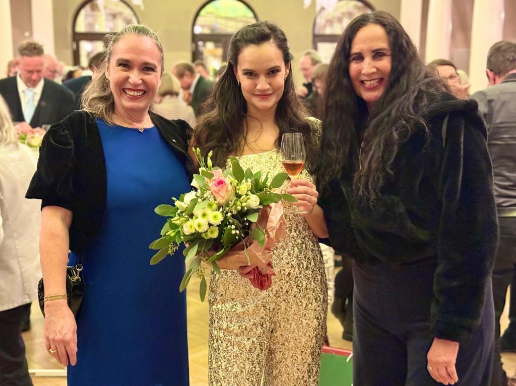 Die Fotos stammen aus dem Prinzregententheater, 25.11.2025: Judith Rakers im Gespräch mit Raphaela Gromes zu „Fortissima“ mit wunderbaren Musikinterpretationen der vergessenen Komponistinnen: Arrangement von Julian Riem, dem bezaubernden Pianisten und Komponisten und natürlich der Starcellistin Raphaela Gromes. Ein unvergesslicher Abend. Im Bild die Gönnerin & Musikförderin Sautter, die Medienunternehmerin Inge Bell, die Politphilosophin Regula Stämpfli, die Künstlerin Ilana Lewitan. Auf der Bühne Judith Rakers, die den Abend hervorragend moderiert hat.
